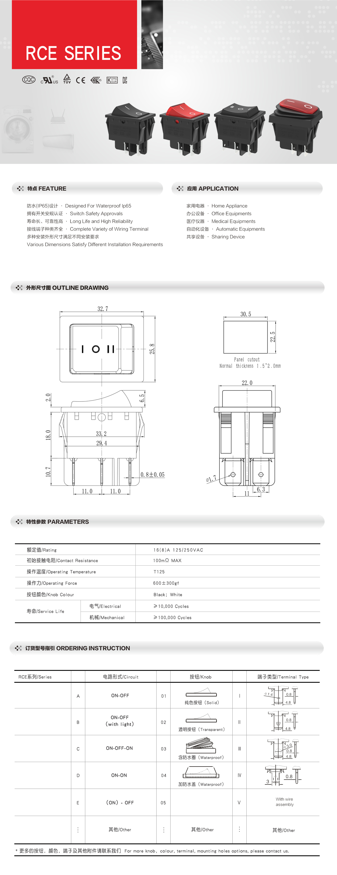 RCE系列 船型开关 方形翘板开关KCD4 ON-OFF-ON可做复位