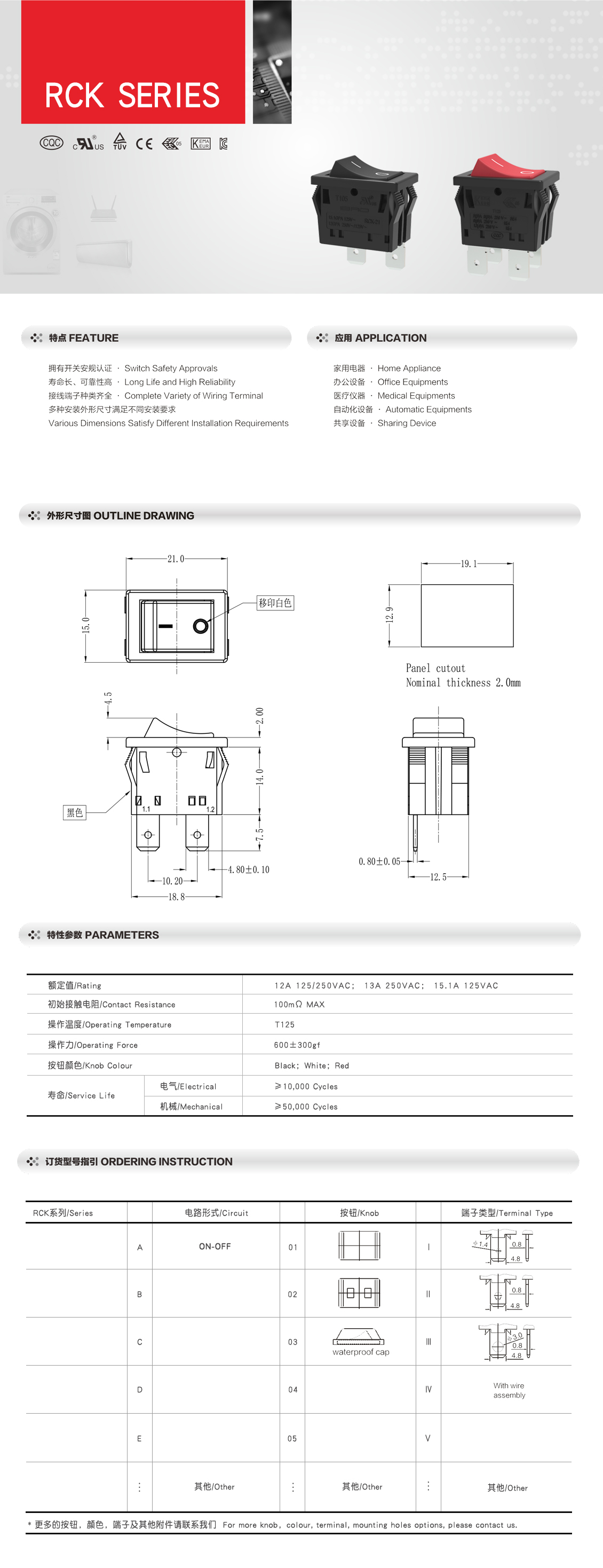 RCK系列 船型开关 方形翘板开关 ON-OFF单刀单掷
